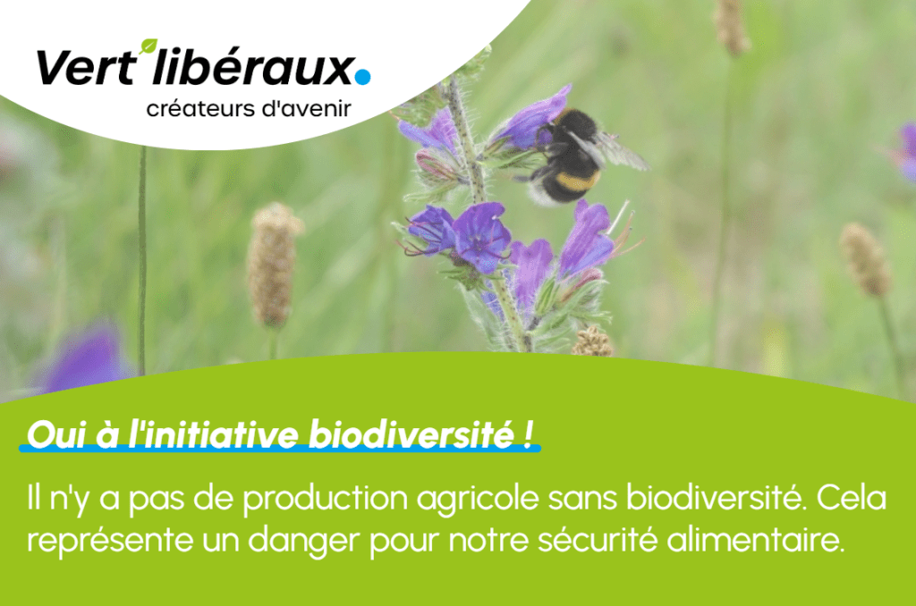 Les délégué·e·s des Vert’libéraux ont, aujourd’hui, lors de leur assemblée tenue en ligne, recommandé le Oui à l’initiative populaire « Pour l’avenir de notre nature et de notre paysage (initiative biodiversité) ». La décision s’est faite par 86 voix en faveur, 46 voix contre et 15 abstentions.