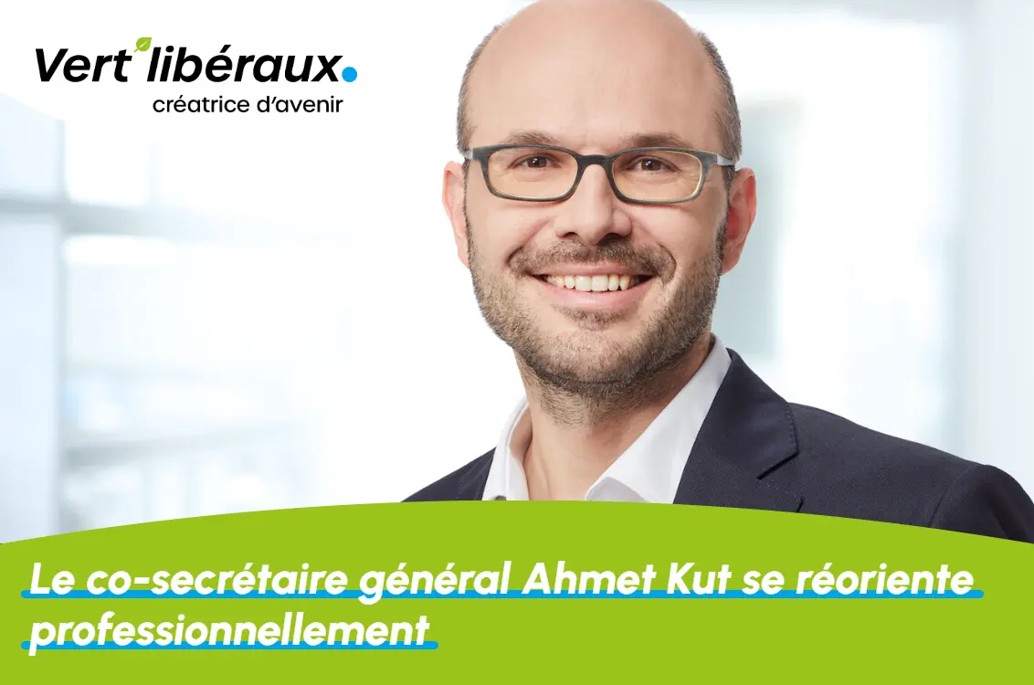 Ahmet Kut quittera le poste de co-secrétaire général en début 2024. « Ces presque sept années passées au service des Vert’libéraux Suisse ont été un grand privilège, extrêmement passionnantes et instructives. Le moment est désormais arrivé de passer le témoin », s’est exprimé Kut. Le Président du Parti Jürg Grossen a ajouté : « Ahmet Kut a fortement contribué à la professionnalisation et au renforcement de notre Parti et de notre groupe parlementaire au cours des dernières années. J’ai énormément apprécié notre collaboration et regrette vivement son départ. Je remercie chaleureusement Ahmet Kut pour son énorme engagement et lui souhaite tout de bon pour l’avenir ».